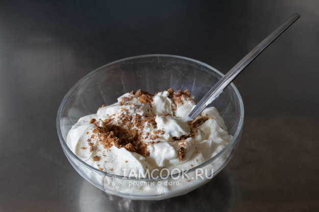 Основную массу пряничной крошки смешать с йогуртом до гомогенности.