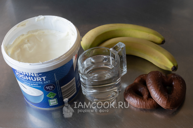 Йогурт, который я использую, имеет жирность 10%. Если у вас менее жирный йогурт, его количество придётся уменьшать, потому что за стабильность торта тут отвечают пряники, они не смогут впитать в себя больше, чем определённое количество жидкости. Если жирного йогурта нет, то лучше брать сметану или мягкий творог.