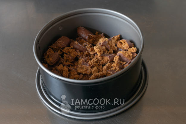 Разломать то количество пряников, которого окажется достаточно, чтобы полностью покрыть дно вашей формы.