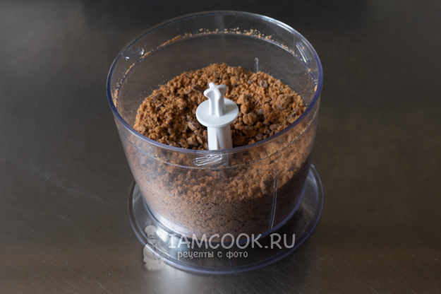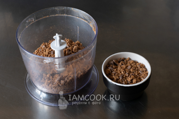 Измельчить оставшуюся пряничную крошку. Отложить от этой порции три ложки для посыпки.