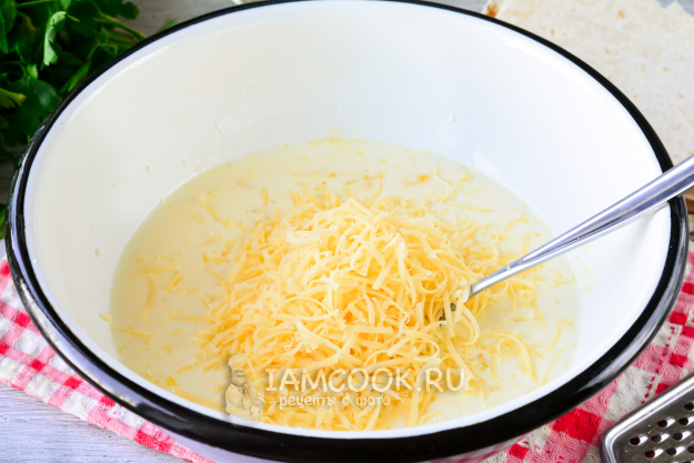 Добавьте натертый на терке сыр. Терку используйте среднюю или крупную.