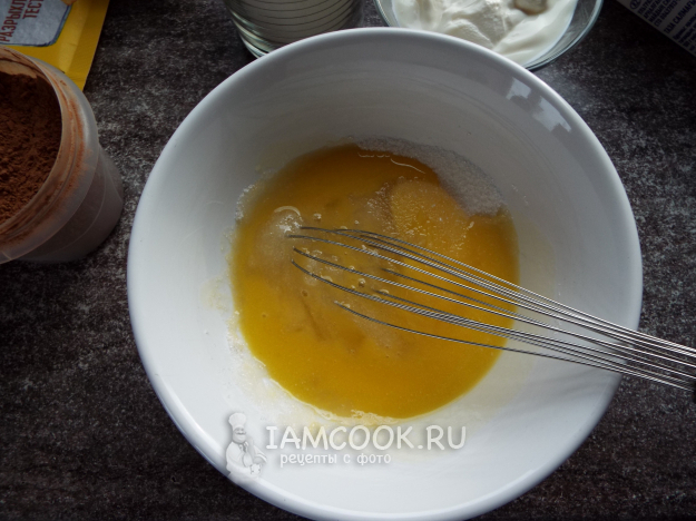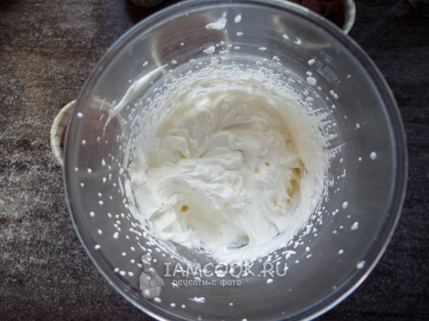 А в этот момент холодные сливки взбить с сахаром до стойкого крема.