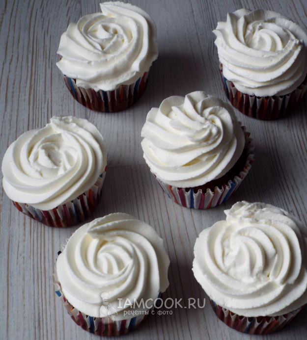 Отсадить крем на капкейки с помощью кондитерского мешка с насадкой.