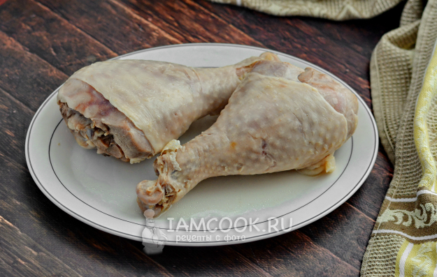 Удивительно, но голени индейки бывают абсолютно разных размеров. Есть такие голени, где одна ножка вытянет почти на килограмм. А я сегодня приобрела голени очень миниатюрных индюшек: здесь две голени - чуть меньше кило. В любом случае, если приобрели их замороженными, то полностью разморозьте.
