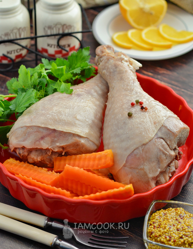 Подготовьте всё для варки голеней индейки.