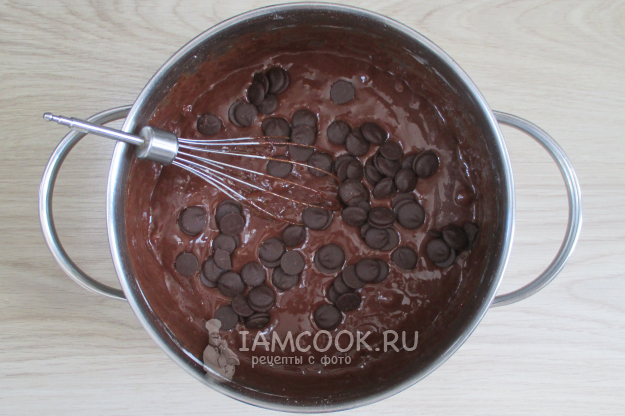 Вмешайте в тесто для брауни шоколадные капли (орехи, вишню и т.п.).