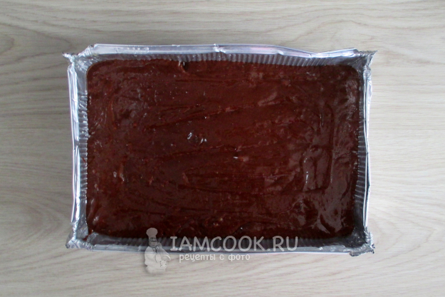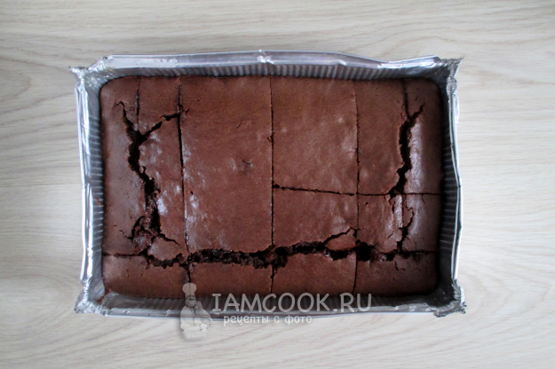 Традиционно брауни пекут в прямоугольных формах, но можно практически в любой по вашему желанию. Высота теста пусть будет около 3 см. Пеките брауни при 160 градусах около 30 минут.