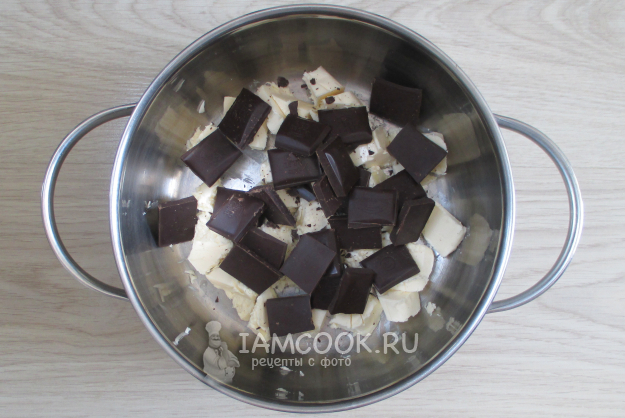 Для теста расплавьте темный или горький шоколад в горячем сливочном масле.