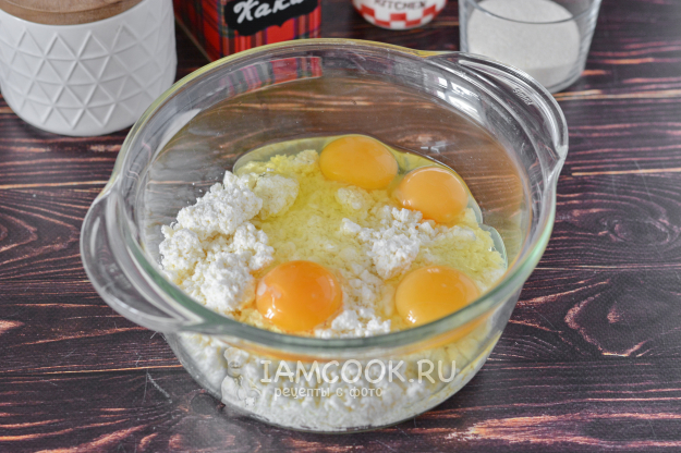 Соберите все продукты по списку и приступим к приготовлению шоколадной творожной запеканки с какао в духовке.