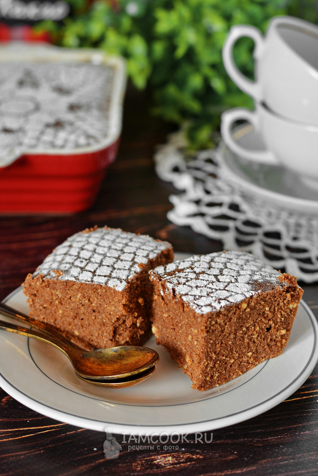 Творожная запеканка с какао готова. Подавайте тёплой или остывшей.
