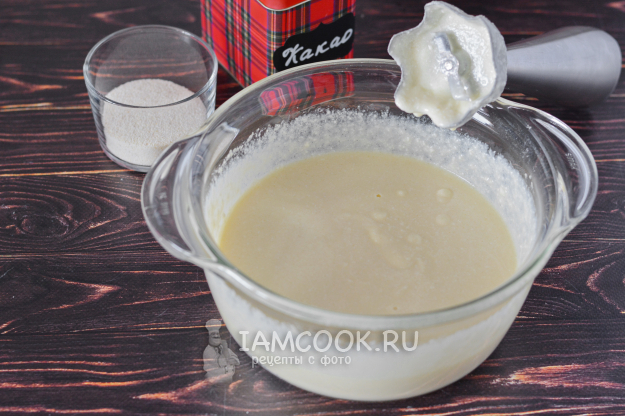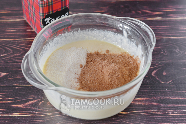 Добавьте какао и манную крупу. Какао добавляйте по вкусу, но не переборщите, чтобы запеканка не начала горчить. Двух-трёх столовых ложек будет достаточно.