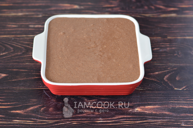 Выложите массу в форму для запекания. Я выбрала небольшую форму - 20х20 см, чтобы запеканка была повыше.
