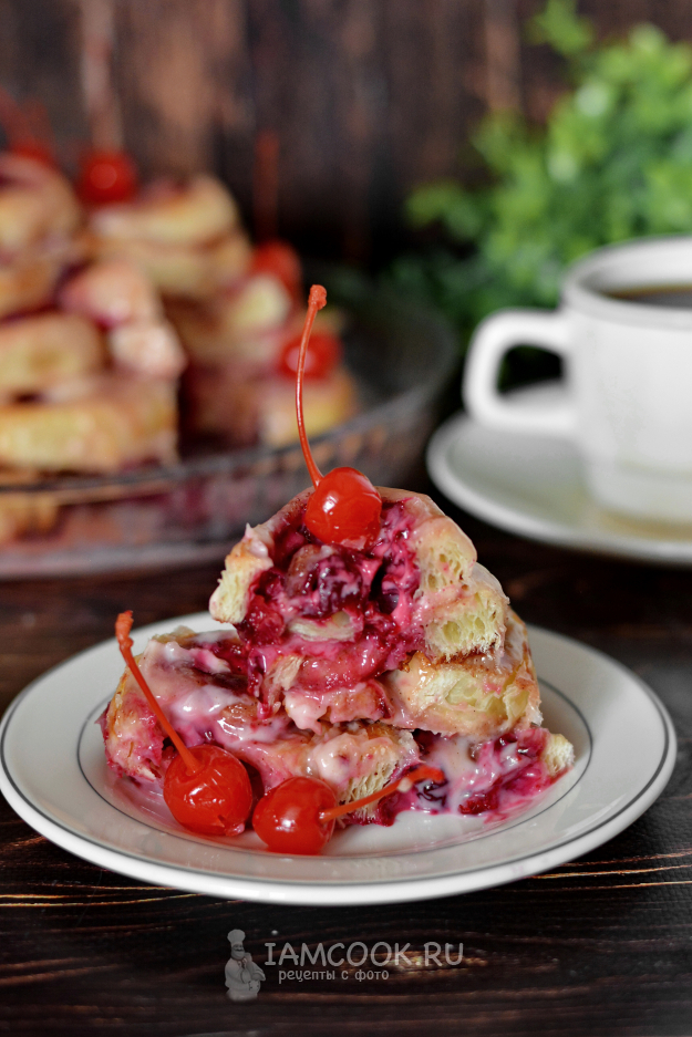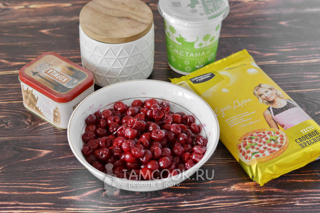 Слоеное тесто и вишню нужно полностью разморозить. Тесто обычно размораживается около двух часов.