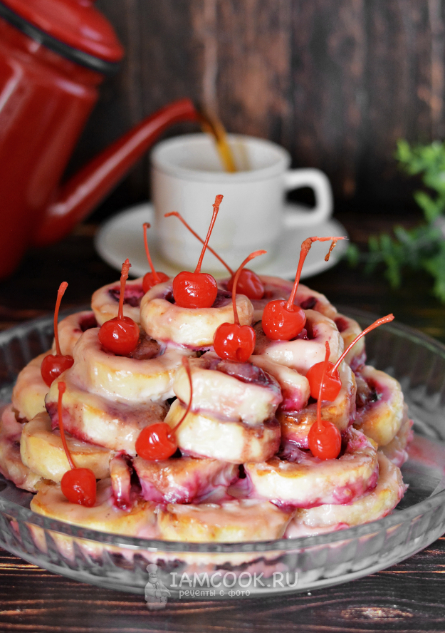 Каждый рулетик с вишней нарежьте на кусочки примерно по 1,5 см.