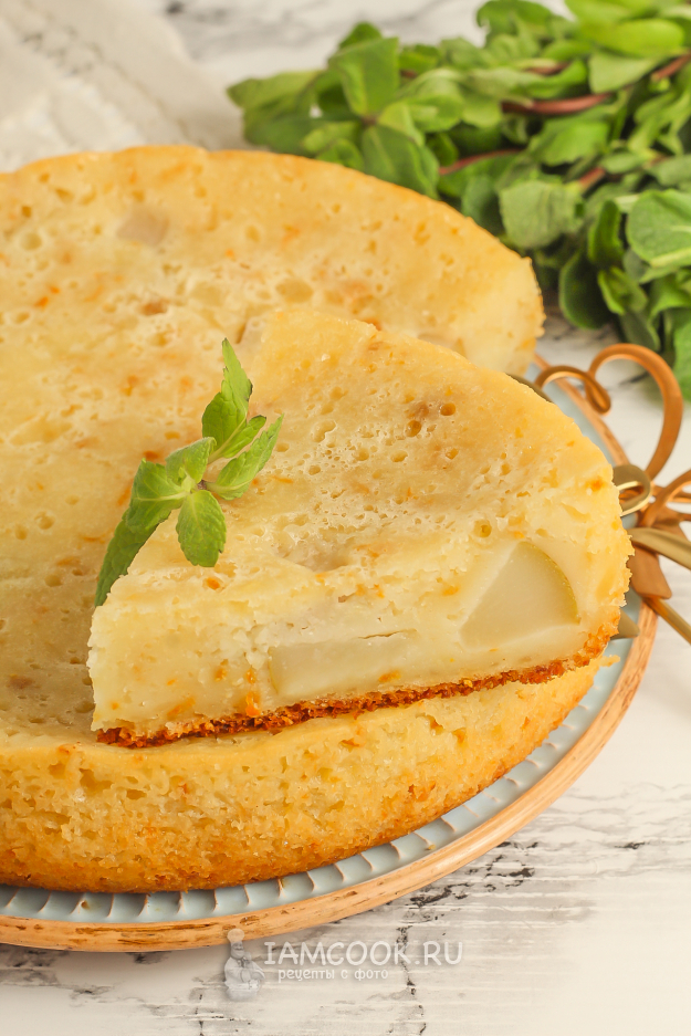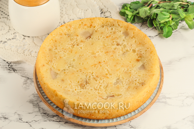 Подайте творожную запеканку с грушей к столу, нарежьте ее на кусочки.