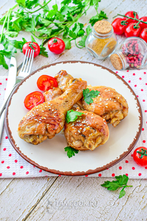 Куриные голени в соусе терияки готовы! Их можно сразу подать к столу или дополнить любым гарниром.