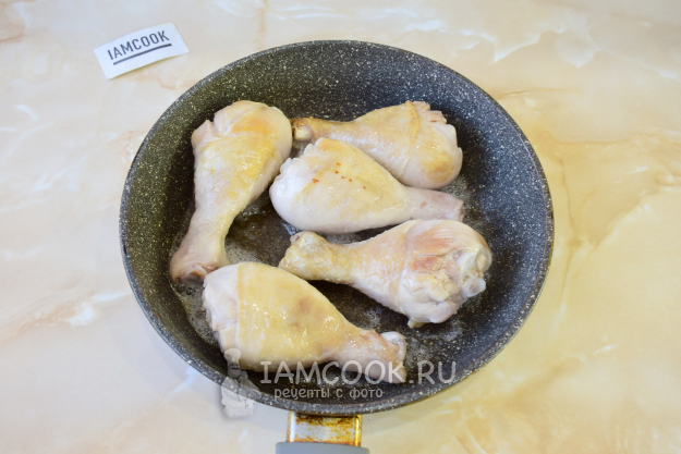 Выложите голени на горячую сковороду и обжаривайте с добавлением небольшого количества растительного масла.