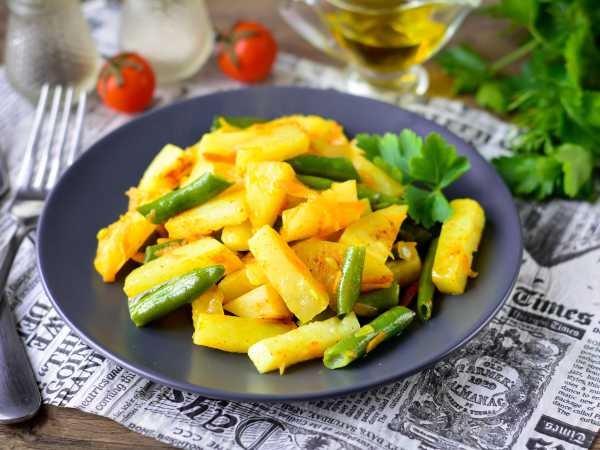 Добавьте зеленый замороженный или консервированный горошек, соль и перец по вкусу, тушите еще 3-4 минуты. При желании можно добавить сушеные ароматные травы или любимую овощную приправу для аромата.