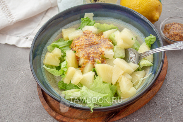 На стол постный салат с ананасом подавайте сразу после приготовления. Приятного аппетита!!!