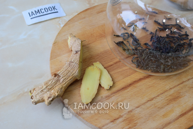 Отрежьте пару ломтиков имбиря. Имбирь можно не очищать от кожуры. Просто предварительно его ополосните.