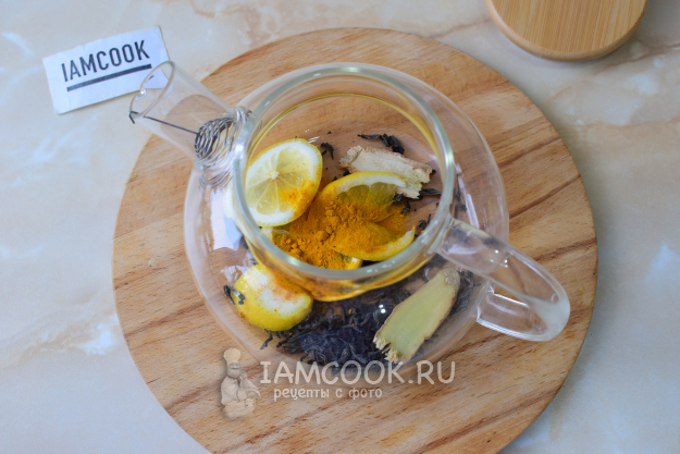 Чтобы сделать чай не только вкусным, но и полезным, в него можно добавлять различные специи, например, имбирь и куркуму. Такой чай получается очень ароматным и пряным. Куркума ему придает яркий желтый цвет. Но будьте осторожны - пряности могут вызывать аллергию.