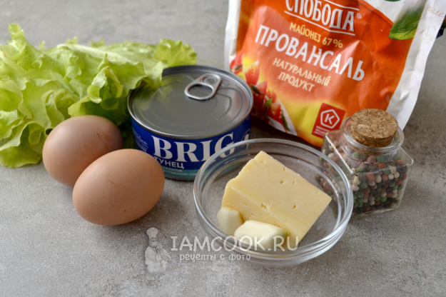 Соберите продукты для приготовления кето салата с тунцом и яйцом.