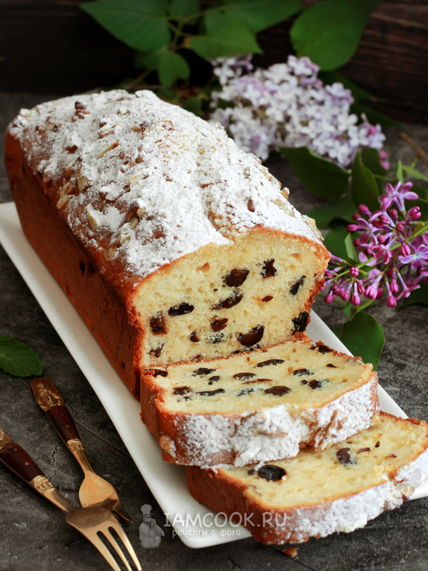 Проверьте готовность кекса шпажкой, она должна выходить полностью сухой. Остудите йогуртовый кекс с орехами и изюмом в форме, а затем извлеките его. Поверхность посыпьте сахарной пудрой по желанию.