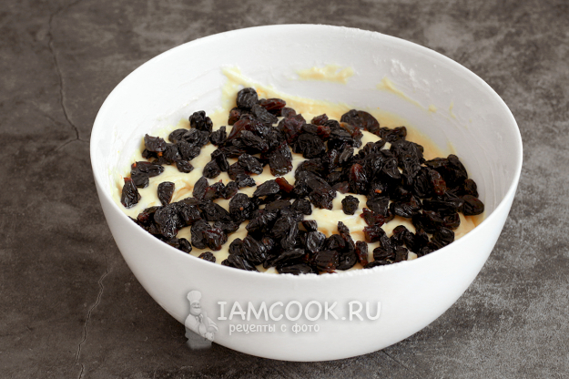 В самом конце добавьте тщательно промытый изюм. Я его лишь отжала от ликера, не обсушивала и не обваливала в муке.