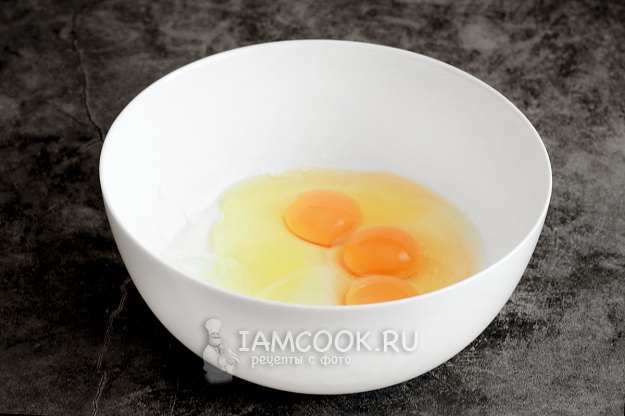 Йогурт соедините с яйцами, добавьте щепотку соли, перемешайте. Я использовала крупные яйца, их вес составил 211 граммов. Густота теста будет варьироваться в зависимости от размера яиц.