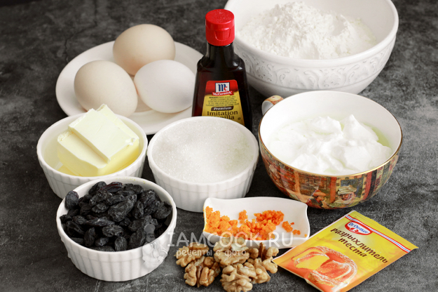 Для йогуртового кекса нам понадобятся следующие продукты. Все продукты берите комнатной температуры.