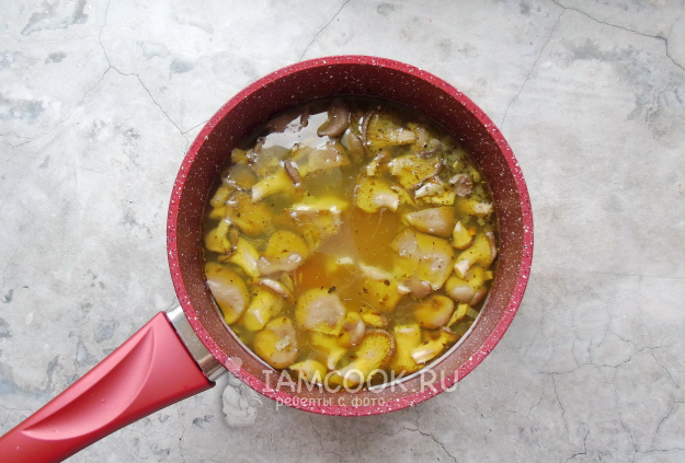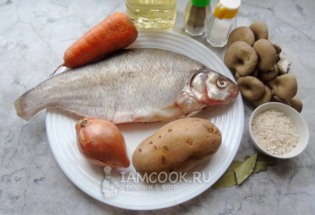 Подготовьте ингредиенты для рыбного супа с грибами.