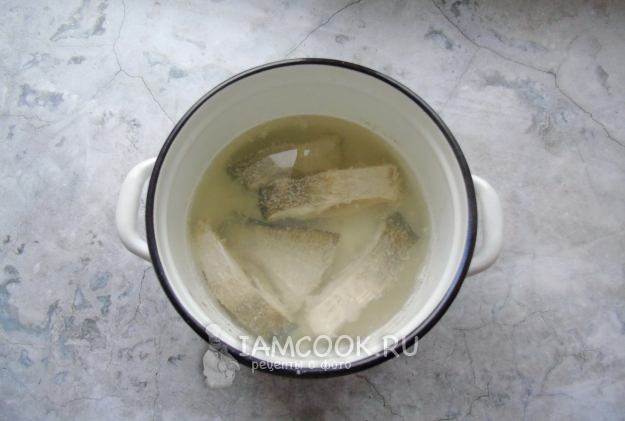 Достаньте рыбу из бульона, а бульон процедите и залейте им овощи в кастрюле.