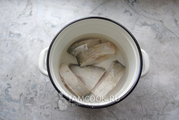 Доведите до кипения, огонь убавьте до минимума, снимите пену. Варите рыбу 25-30 минут на самом минимальном огне, с приоткрытой крышкой кастрюли.