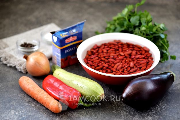 Для приготовления постного лобио с овощами вам понадобятся все продукты, что на фото.