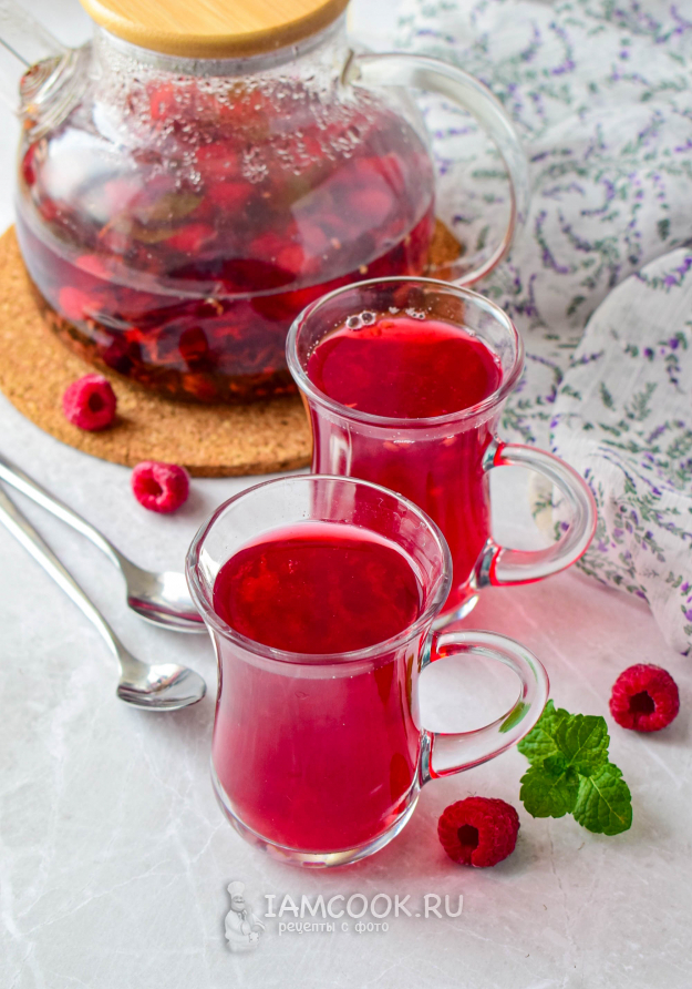Готовый чай с малиной и черной смородиной разлейте по чашкам и угощайтесь. Для сладости можно добавить ложку меда.
