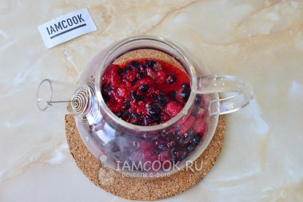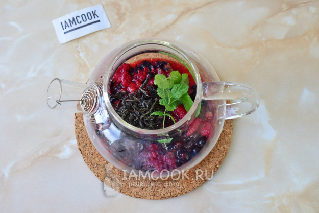 Переложите промытые ягоды в заварочный чайник и немного помните, чтобы они пустили сок. Несколько ягод можно оставить целыми, чтобы они красиво плавали в готовом чае.