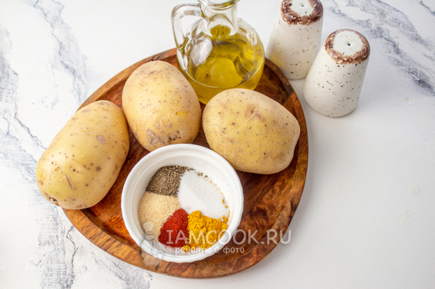 Для запекания картофеля по-деревенски понадобится картошка с тонкой кожурой, специи и масло.