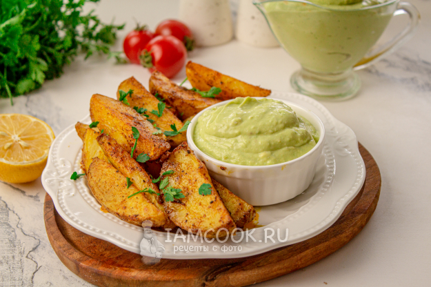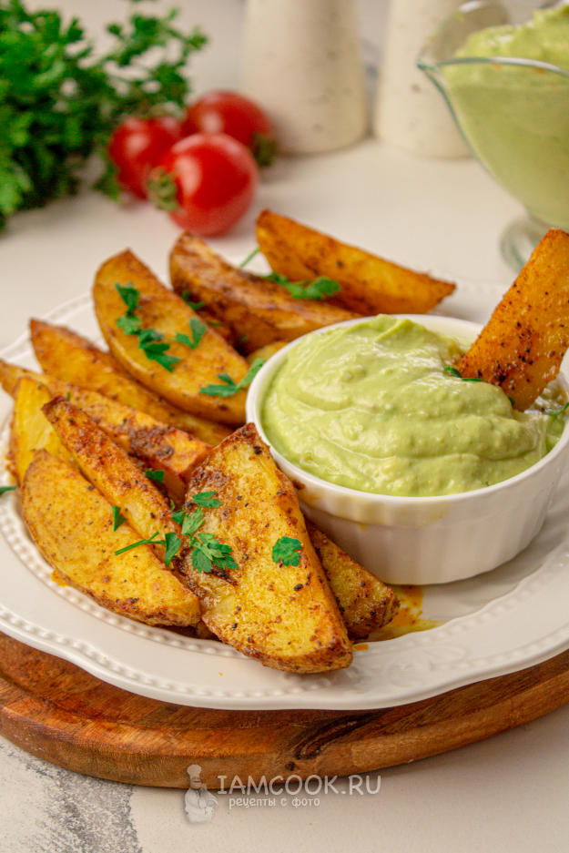 Готовую картошку по-деревенски подавайте с соусом из авокадо. Приятного аппетита!!!