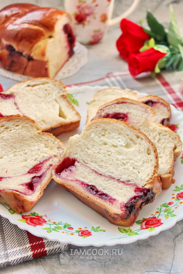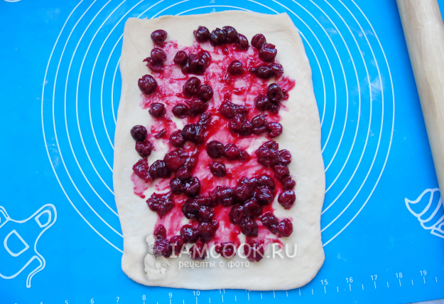 Вторую часть теста также раскатайте и выложите начинку из вишни.