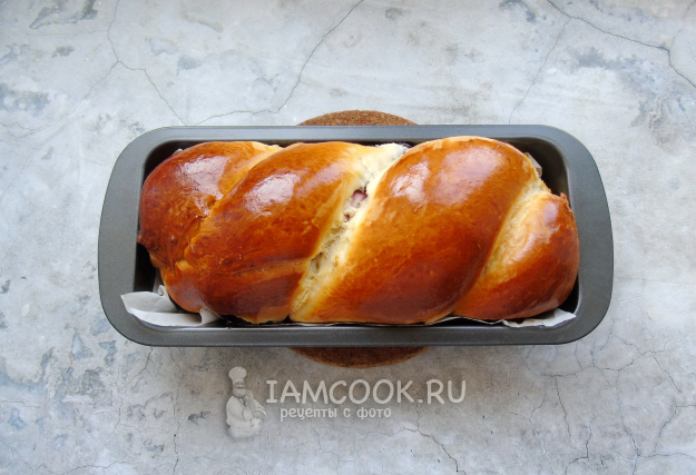 Выпекайте рулет с творогом и вишней в духовке, заранее разогретой до 175-180 градусов, 45-55 минут. Время выпекания зависит от вашей духовки.