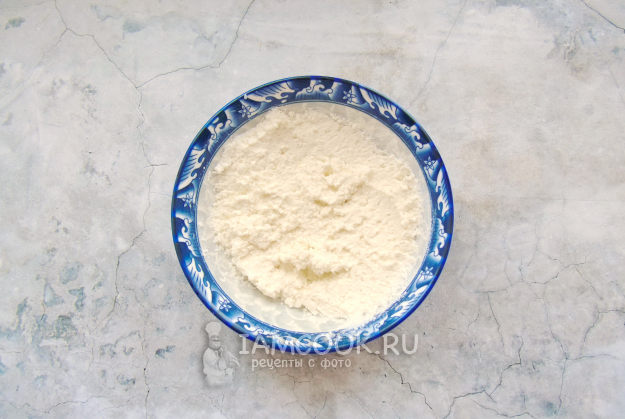 Творог перемешайте с сахаром.