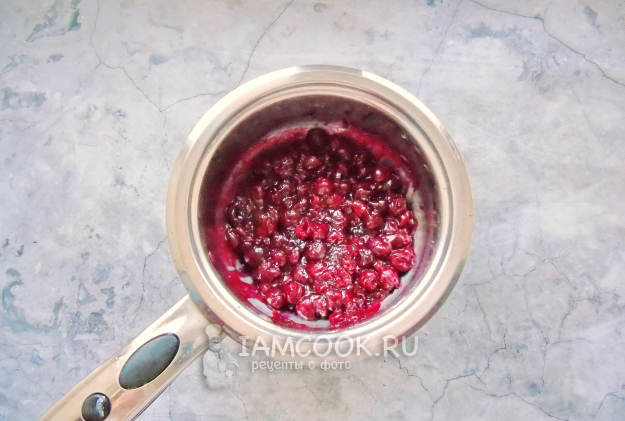 А пока тесто подходит, готовим начинки. Мороженую или свежую вишню без косточек выложите в кастрюлю с антипригарным покрытием. Добавьте сахар по вкусу и крахмал, перемешайте. Поставьте на плиту, и подогревая на небольшом огне, постоянно помешивая, доведите до загустения.