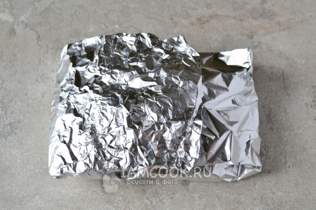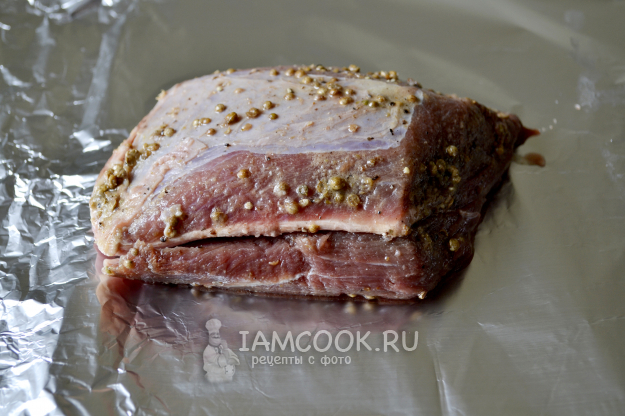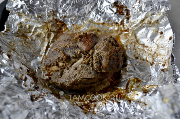 Аккуратно оберните мясо фольгой и отправьте в разогретую до 180°С духовку.