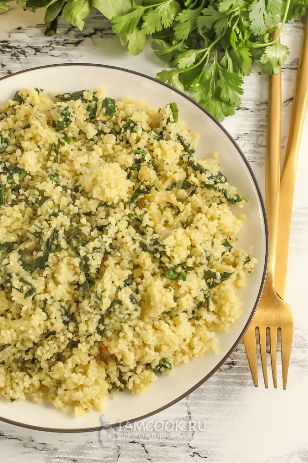 Продукты для приготовления кускуса со шпинатом - перед вами!