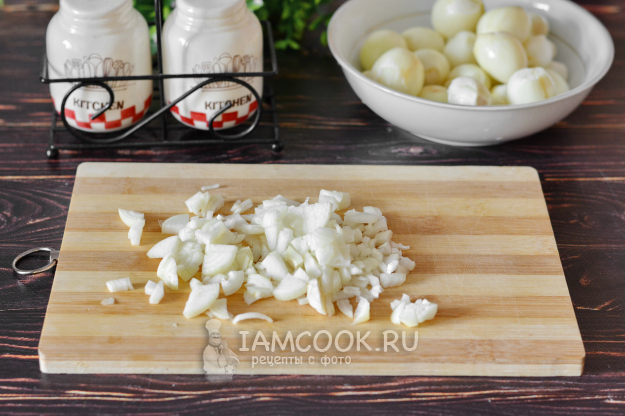 Лук очистите, сполосните и мелко-мелко нарубите.