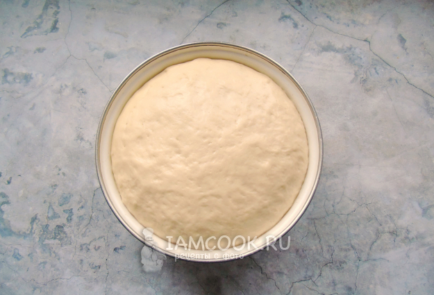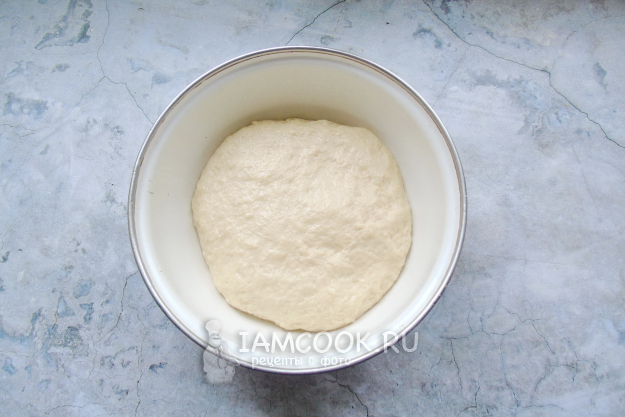 Насыпьте соль и постепенно добавляйте просеянную муку, перемешивая ингредиенты теста сначала в миске ложкой. А после выложите на стол, присыпанный мукой, и продолжайте замес на столе до получения гладкого, эластичного, но достаточно крутого теста. Накройте миску с тестом пленкой или полотенцем. Поставьте в теплое место.