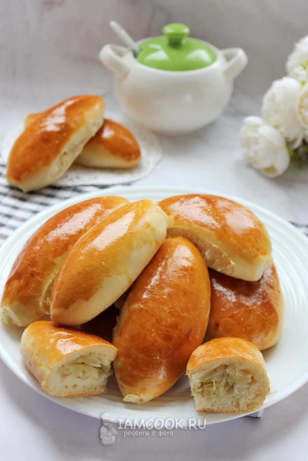 Выпекайте пирожки с капустой и рыбой в духовке, заранее разогретой до 175-180 градусов, 35-40 минут. Время выпекания зависит от вашей духовки.