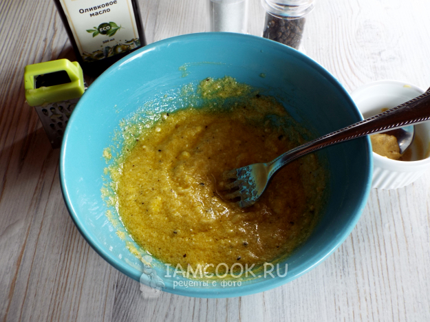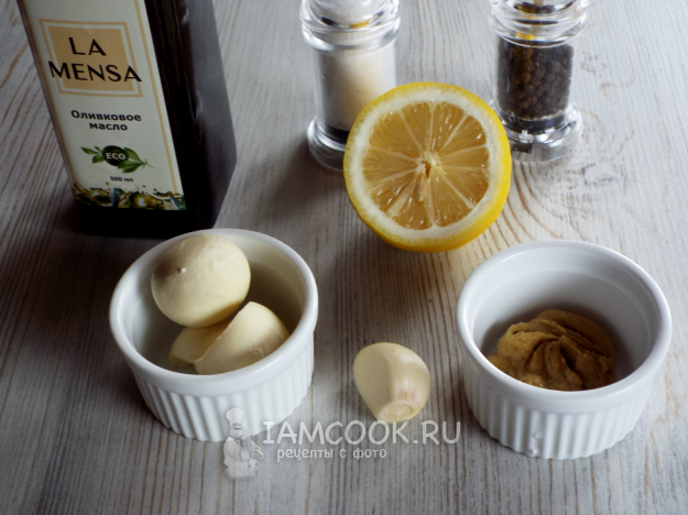 Добавить горчицу, сок лимона, соль и перец по вкусу и постепенно влить масло.