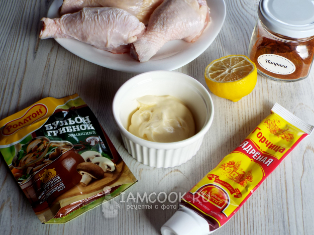 Маринад для жарки куриных голеней на сковороде готовить будем из таких ингредиентов.