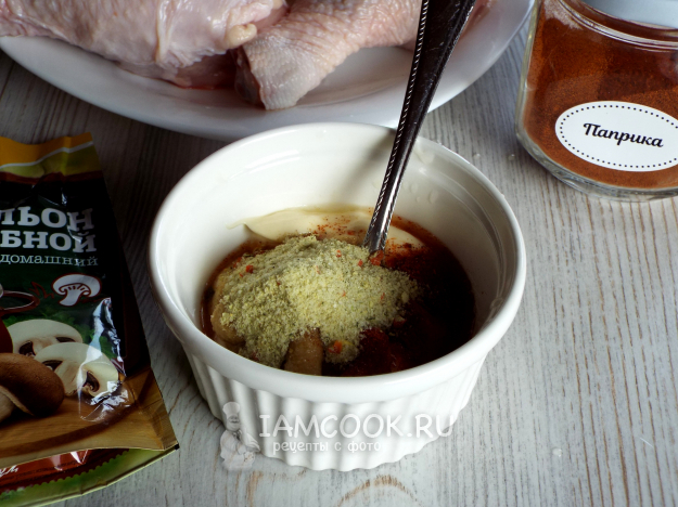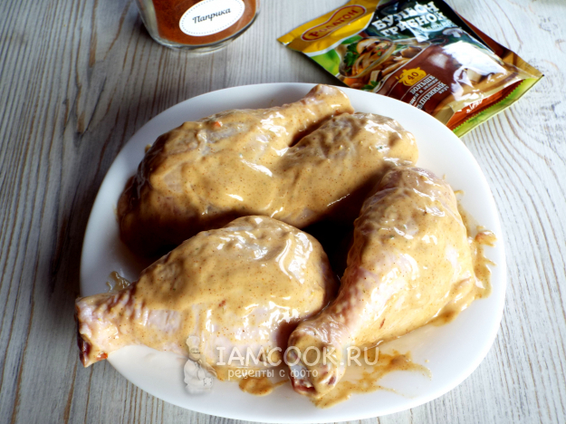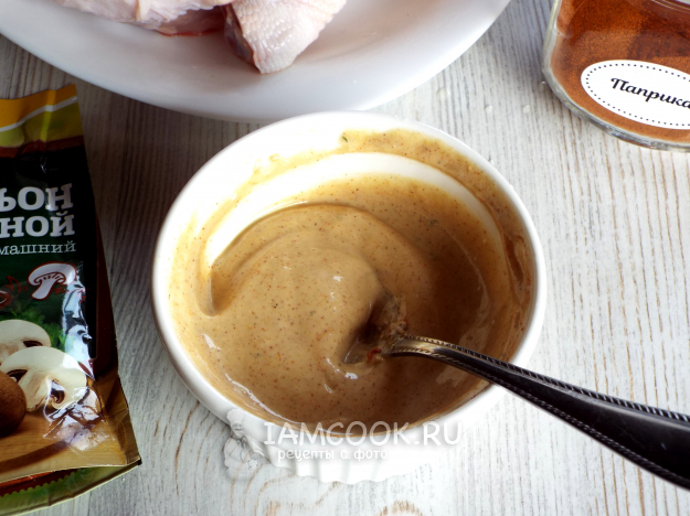 Перемешать. Маринад для жарки голени курицы на сковороде готов.
